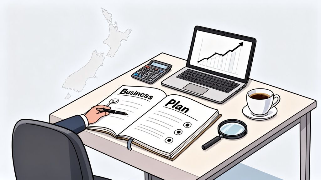 I've seen it time and again, especially with exciting side hustles in NZ—entrepreneurs are so keen to get started they jump straight into the action. That enthusiasm is fantastic, but without a plan, it's easy to get lost in the competitive New Zealand market. This isn't just about ticking a box for the bank; it’s about genuinely understanding your own venture, inside and out.